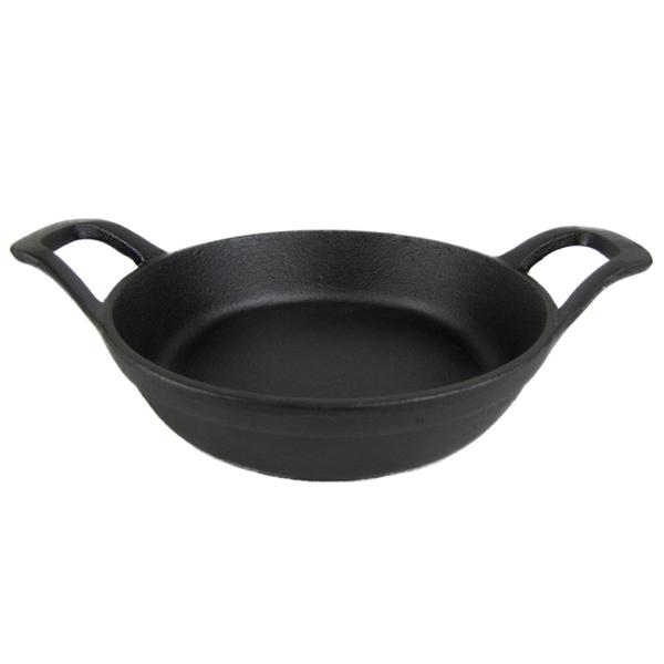 Cazuela de hierro, esmaltada y de color negro. Útil por su gran resistencia y antiadherencia. Al ser una cazuelita de hierro fundido es muy robusta y mantiene el calor durante más tiempo. Se utiliza para cocciones largas, ya que soporta altos niveles de temperatura y todo tipo de fuegos. Se pueden utilizar en el horno sin problema. Un utensilio de cocina muy práctico para restaurantes y hoteles. Para todo tipo de fuego, vitrocerámica e inducción. – SÍ: Lavar con una esponja suave y agua caliente. Secar enseguida con un trapo suave o al horno a baja temperatura. Poner una capa fina de aceite con papel de cocina para guardar. – NO: Jabón / Estropajo / Lavavajillas / Dejar en remojo