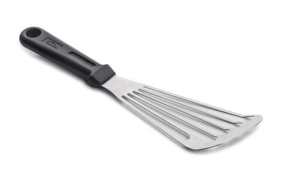 Su borde biselado ayuda a deslizarse debajo de los alimentos.