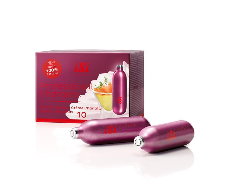 El sistema perfecto de iSi consta de dos sencillos componentes: un sifón iSi original y una carga perfectamente adaptada. Las cargas profesionales contienen 8,4 g de N2O puro y garantizan el resultado perfecto para cualquier tipo de creación.
