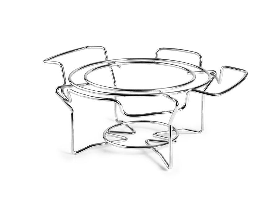 Soporte para quemador y plato de barro o hierro fundido. Con este soporte podrás cocinar fácilmente un delicioso plato directamente en la mesa. Sus asas permiten transportarlo de la cocina a la mesa sin quemarse.Fabricado en acero inoxidable es resistente y duradero. Inox 18/10